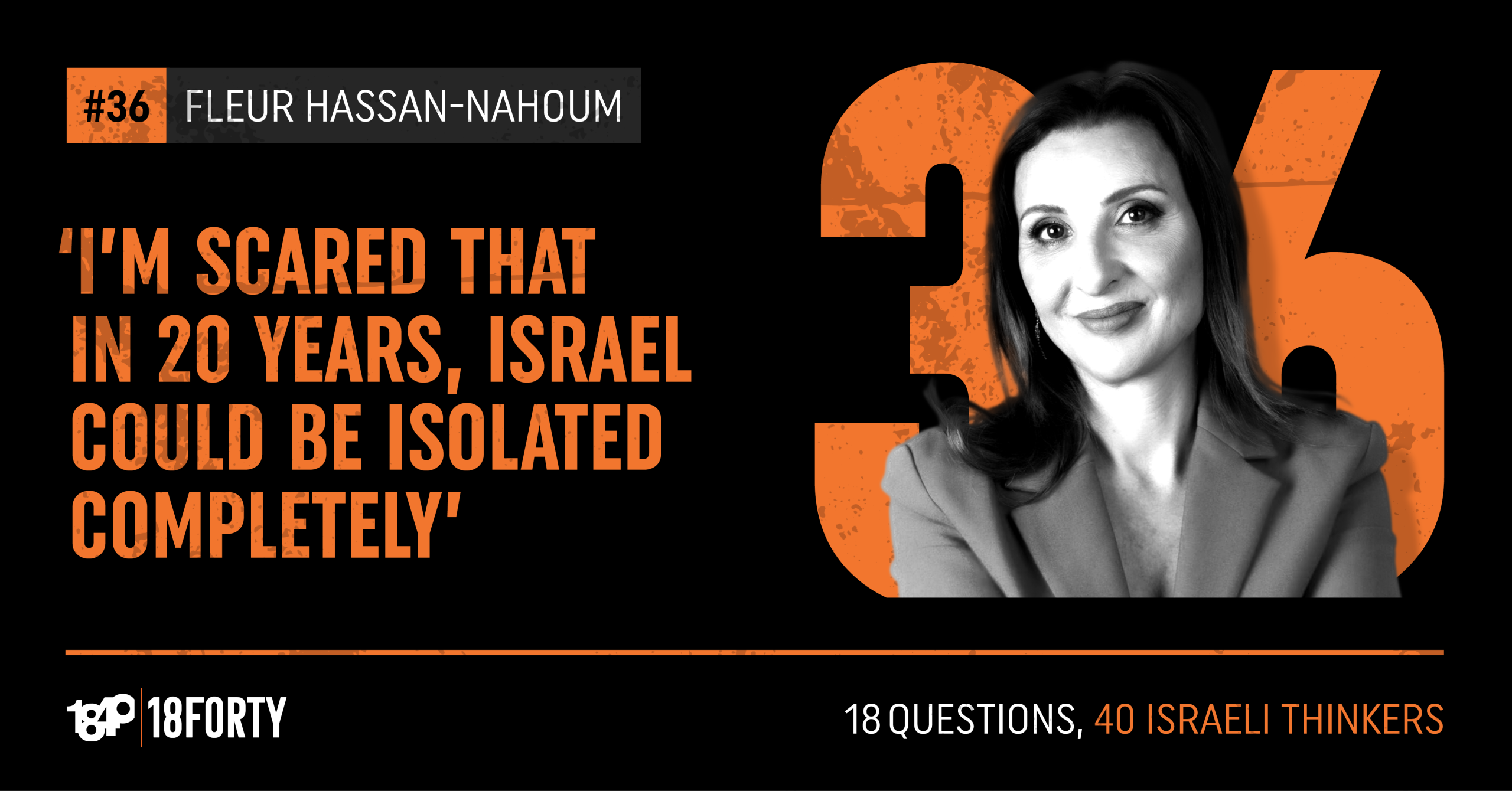 My name is Fleur Hassan-Nahoum. I’m a Foreign Ministry special envoy for trade and innovation, former Deputy Mayor of Jerusalem, and this is 18 Questions, 40 Israeli Thinkers from 18Forty.